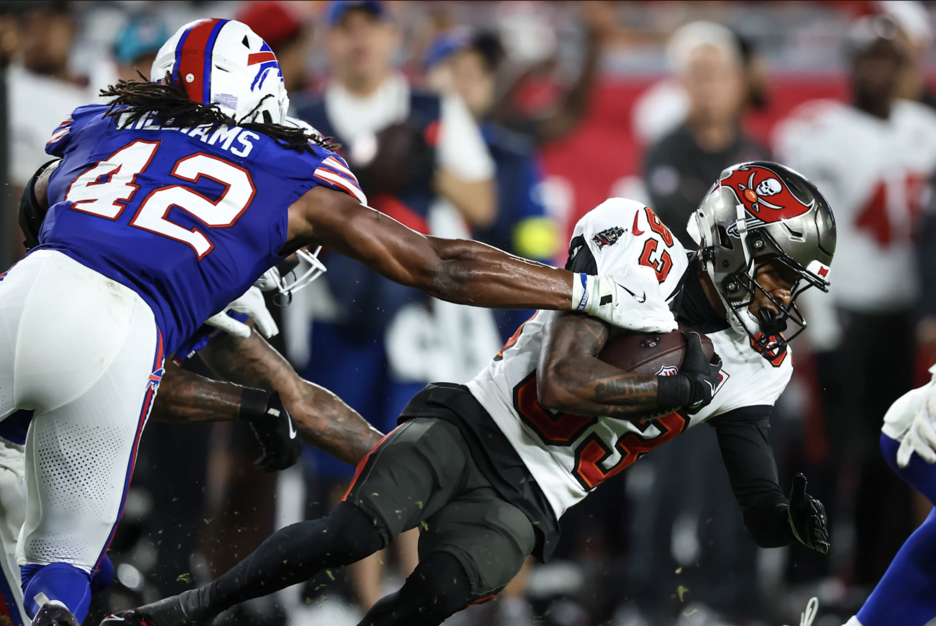 No todo fue positivo en este Bucs vs Bills. El safety Shilo Sanders fue expulsado por lanzar un puñetazo, un error grave que mancha su candidatura para el roster. También la secundaria acumuló castigos de pass interference y holdings que regalaron primeras oportunidades a Buffalo en momentos clave.