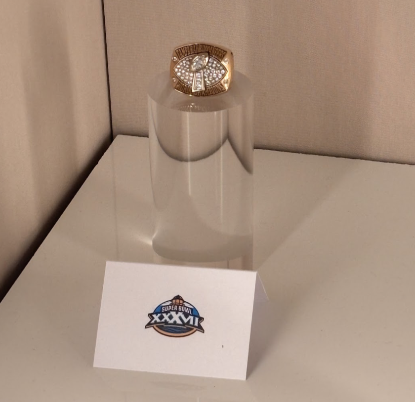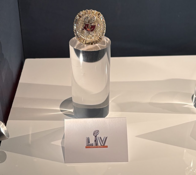Uno de los puntos más fotografiados del fin de semana fue, sin duda, la exposición de anillos de Super Bowl. No era una vitrina cualquiera: allí se podía contemplar desde diseños sobrios hasta auténticas joyas monumentales que parecían más una pieza de museo que un trofeo deportivo. Los había de todos los tamaños, con piedras preciosas incrustadas y grabados que narraban la historia de cada campeonato. Para muchos asistentes fue la primera vez que podían ver de cerca estos símbolos del éxito deportivo más grande de Estados Unidos, y el asombro se reflejaba en cada rostro. Y si, estaban los de nuestros queridos Bucs, dos de ellos, dos Super Bowls.